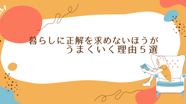 Uncategorized 暮らしに正解を求めないほうがうまくいく理由5選 2026年1月25日 ぢゃん http://dyan1.com/wp-content/uploads/2024/07/ef7af829049aa5b49b97196e2c90eaf3.png ぢゃん 「ちゃんとしなきゃ」「もっと頑張らなきゃ」そう思って一生懸命暮らしているのに、なぜか心が満たされない。家事も仕事も家庭も、それなりにこなし …