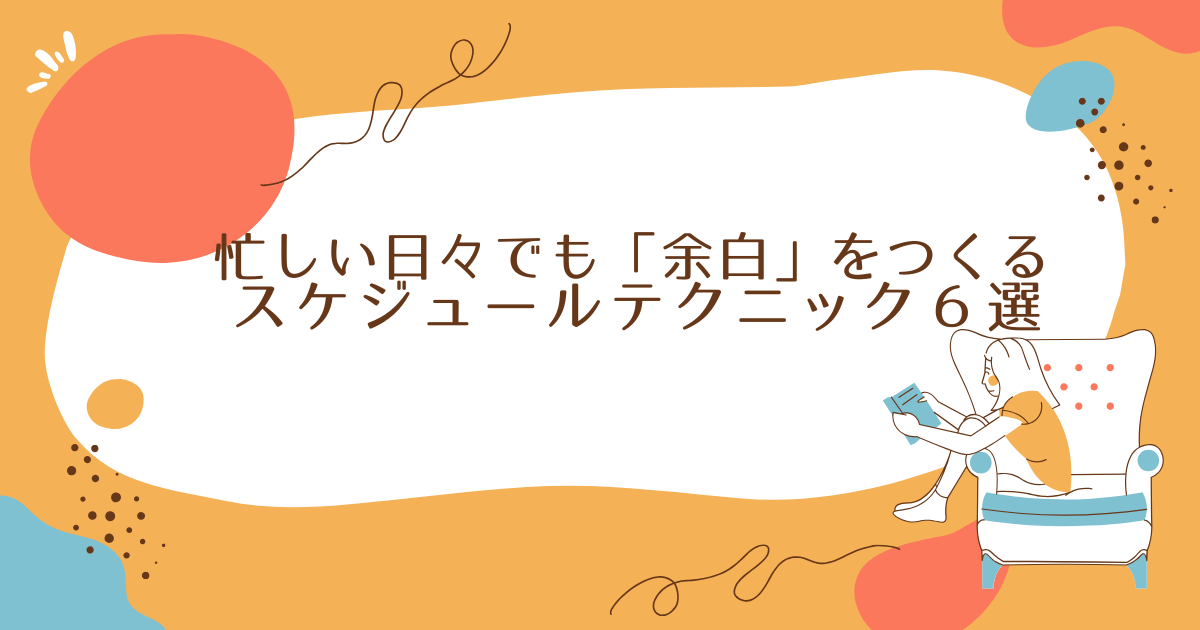 この記事では、忙しい日々の中でも無理なく実践できる「スケジュールの余白づくりテクニック」を6つ紹介します。ただ時間を節約するのではなく、「あえて“空ける”」という発想をベースに、生活の質を上げるヒントを探っていきましょう。